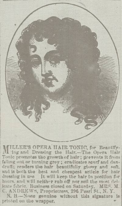 Mrs M.C. Andrews, ran ads in the New York City Directory for this product in 1864 and 65.